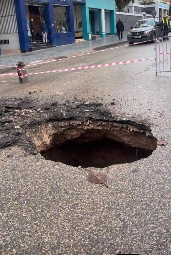 هذا وقد عرت الأمطار الغزيرة التي تهاطلت على حاضرة المحيط اسفي على الواقع الحقيقي للبنية التحتية الهشة لهذه المدينة التي تعيش الويلات منذ عقود من الزمن ،بحيث في كل مرة وحين تظهر العديد من العيوب على مستوى الطرقات، آخرها حفرة ذات قطر كبير ظهرت صباح يوم الأربعاء الاخير أثناء هطول الأمطار الغزيرة على المدينة ليلة الثلاثاء/الأربعاء الأخيرة بالقرب من إحدى المصحات الخاصة، بحيث انه ولخطورة الوضع، حضر الى عين المكان ممثلو السلطات المحلية والمنتخبة التي كلفت بعض العمال والمستخدمين لترميم المكان ،مع العلم ان هذه الحفرة طول قطرها وعمقها كبيرين، اضافة الى المياه الغزيرة التي تجري تحتها دون معرفة منبعها.