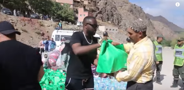 خطف الفنان الكونغولي الفرنسي الشهير”ميتر غيمس”، الأنظار خلال إشرافه على توزيع المساعدات على ضحايا أحد الدواوير المتضررة من الزلزال.