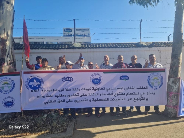 وسبق أن دخل المكتب النقابي ذاته في سلسلة من الوقفات الإحتجاجية للفت الإنتباه لمعاناة مستخدمي هذه التعاونية المختصة في إنتاج وتوزيع حليب الجودة ومشتقاته ؛ وعلى رأسها ” تجريم الممارسة النقابية بشكل يتعارض كليا مع دستور المملكة والمواثيق الدولية ودولة الحق والقانون” .حيث عمدت إدارة التعاونية إلى اتخاذ قرارات تعسفية في حق الكاتب الإداري للمكتب النقابي يونس زاهير وعضو النقابة فهد السليماني وذلك بمجرد تأسيس المكتب النقابي ؛ حيث تفاجئا بتنقيلهما دون رغبة منهما إلى مدينة كلميم التي تبعد عن سلا بأزيد من 700 كيلومتر !! مع ما يتبع ذلك من مشاكل ومعاناة كبيرة وغير محتملة على مستوى الإستقرار المهني والأسري و الدراسي للأبناء..