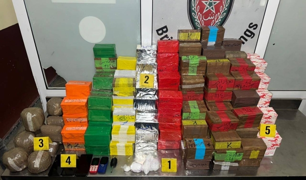 وجرى توقيف المشتبه فيهما بنقطة الأداء بمنطقة أمسكرود، شرق مدينة أكادير، مباشرة بعد وصولهما على متن سيارة خفيفة تحمل لوحة ترقيم مزورة، قادمة من إحدى مدن شمال المملكة، حيث أسفرت عملية التفتيش المنجزة في إطار هذه القضية عن حجز 150 كيلوغراما من مخدر الشيرا، وشحنة من مخدر الكوكايين تزن 210 غرامات، فضلا عن كمية من مسحوق القنب الهندي.