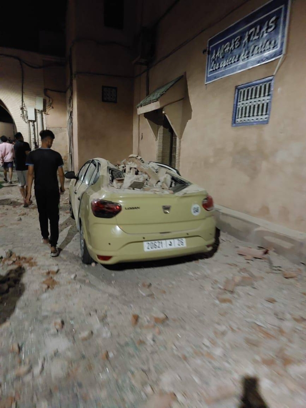 أما المدينة العتيقة بمراكش فقد عرفت، حسب ما تداوله نشطاء على مواقع التواصل الاجتماعي من صور وفيديوهات، تم تبادلها طيلة ليلة الجمعة والساعات الأولى من صباح اليوم السبت، (عرفت) وقوع انهيار في بعض المباني التي أدت إلى وقوع إصابات عديدة وضحايا كثيرين، فيما لم يتم بعد الإعلان عن أية حصيلة للوفيات.