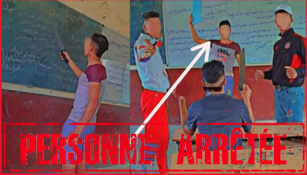 وكانت مصالح الأمن الوطني قد رصدت صورتين على صفحات مواقع التواصل الاجتماعي، تُظهر حيازة مجموعة من الأشخاص لأسلحة بيضاء وأدوات راضة أثناء تواجدهم بداخل مؤسسة تعليمية، حيث أسفرت الأبحاث والتحريات المنجزة على ضوئها عن تحديد هويات المشتبه فيهم وتوقيف أحدهم زوال اليوم الأربعاء.