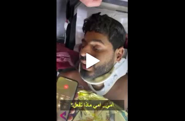 وسأل الشاب عن والدته ماذا حل بها، فأبلغه قريبه بأنهم جميعا بانتظاره، وجرى إنقاذهم.