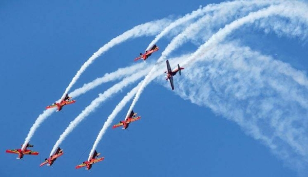 وبهذه المناسبة، قدم ربابنة هذه الطائرات المخصصة لأداء مثل هذه العروض الاستعراضية، لوحات فنية جوية مدهشة وفريدة من حيث الإبداع والتنسيق والإتقان والدقة والانسجام، ما أثار إعجاب الحاضرين من مختلف الجنسيات الذين استحسنوا هذا العرض الجوي الماتع.
