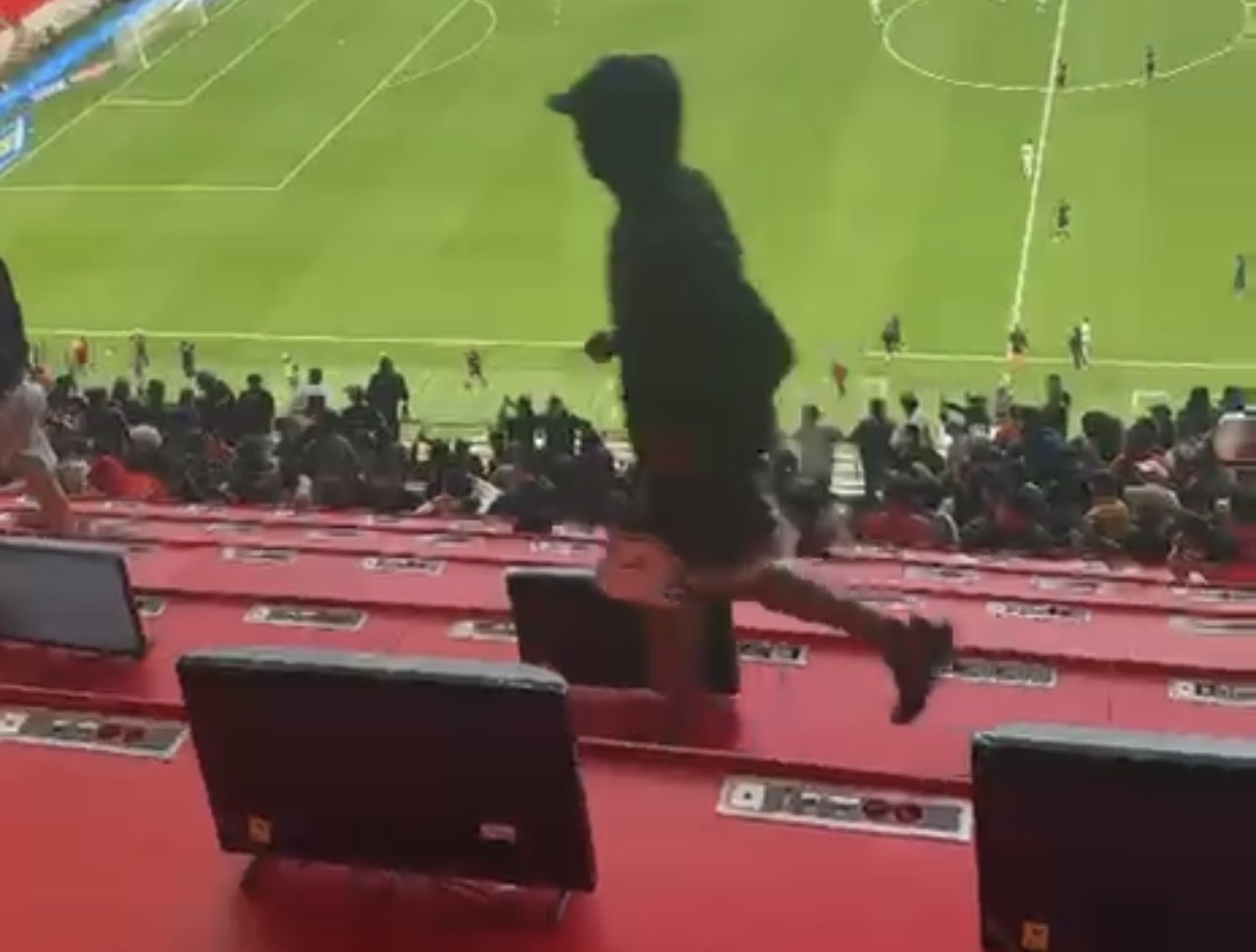 لحظة اقتحام جماهير الجيش الملكي لمنصة الصحفيين في ملعب مولاي عبد الله