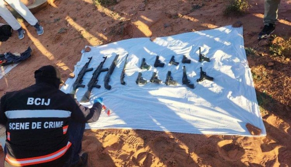 وخلال هذه العملية، تم حجز أجسام ناسفة في طور التركيب، وعبوة مشبوهة عبارة عن طنجرة ضغط تحتوي على مسامير ومواد كيميائية تدخل في صناعة المتفجرات، وعدد كبير من الأسلحة البيضاء، ومبلغ مالي بالدولار الأمريكي، وأكياس تحتوي على مواد كيميائية مشبوهة، إضافة إلى رسم حائطي يتضمن شعار تنظيم “داعش”، ومخطوطات ورقية تحتوي على رصد دقيق لبعض المواقع والمنشآت المستهدفة.كما مكنت عمليات التفتيش والتمشيط من العثور على شحنة من الأسلحة والذخيرة النارية مدفونة في مكان معزول أسفل مرتفع صخري بإقليم الرشيدية، كانت ملفوفة في أكياس بلاستيكية وجرائد ورقية منشورة في دولة مالي، من بينها أسبوعيات ورقية صادرة بتاريخ 27 يناير 2025.
