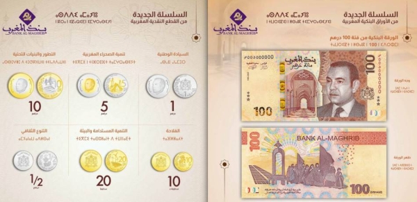 وأقدم بنك المغرب على طرح للتداول الورقة البنكية الجديدة من فئة 100 درهم والقطع النقدية من فئة 10 سنتيمات، و20 سنتيما، ونصف درهم، ودرهم، و5 دراهم، و10 درهم، اعتبارا من اليوم الجمعة. كما يقدم البنك المركزي، كل عشر سنوات تقريبا، على تداول سلسلة جديدة من الأوراق البنكية والقطع النقدية.