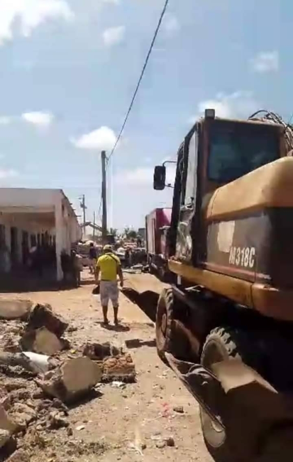 وسارع التجار المعنيون إلى إنقاذ ما يمكن انقاذه من سلع متبقية بالمحلات التجارية قبل أن تصلها معاول الهدم .