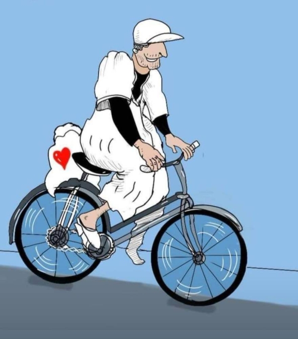 درات صورته عبر أرجاء العالم داخل قنواته المرئية والمسموعة والمكتوبة، ذلك الرجل الستيني الحر الذي حمل ما تبقى من كيس دقيق بالبيت حمله فوق ” البورت بكاج” خلف دراجته الهوائية البسيطة، ثم مضى به حيث المحسنون يجمعون التبرعات لإرسالها إلى المناطق المنكوبة، كانت عدسة هاتف نقال ترصد عن قرب قدومه، وقيامه بالواجب التضامني ثم انسحابة فوق ” بيكالته: بصمت، رصدته الكاميرا إلى أن غير الشارع ومضى إلى حال سبيله.