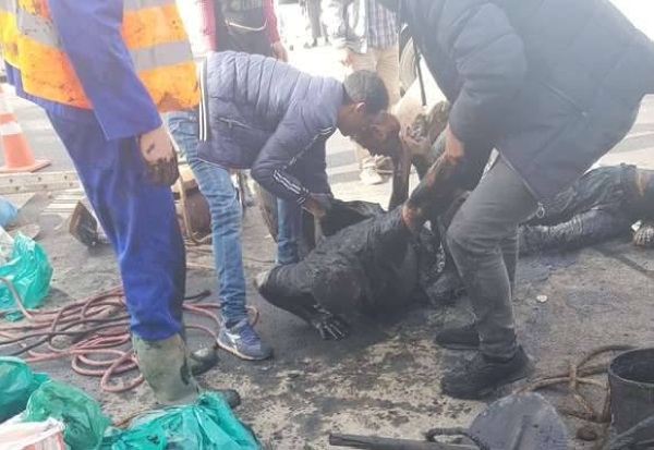 وفيما كان الضحايا الثلاث يصارعون الموت بقعر بالوعة الصرف الصحي، كان أحد المارة يمر بجوار ورش الصيانة، ليقف مشدوها أمام هول الحادث، حيث تدخل بشهامة وأنقذ الضحايا جميعهم دفعة واحدة.